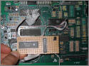 Der Speicher inklusive Board des 800XL´s von Beetle ist durch einen Brand zerstört worden und wurde von Wolfram (Mega-Hz) mit dem SRam Speicherersatz versehen. Man beachte die Lackdraht Fädel- und Klebetechnik.